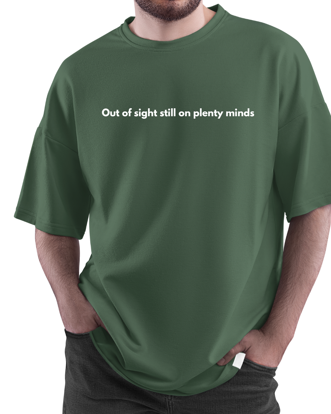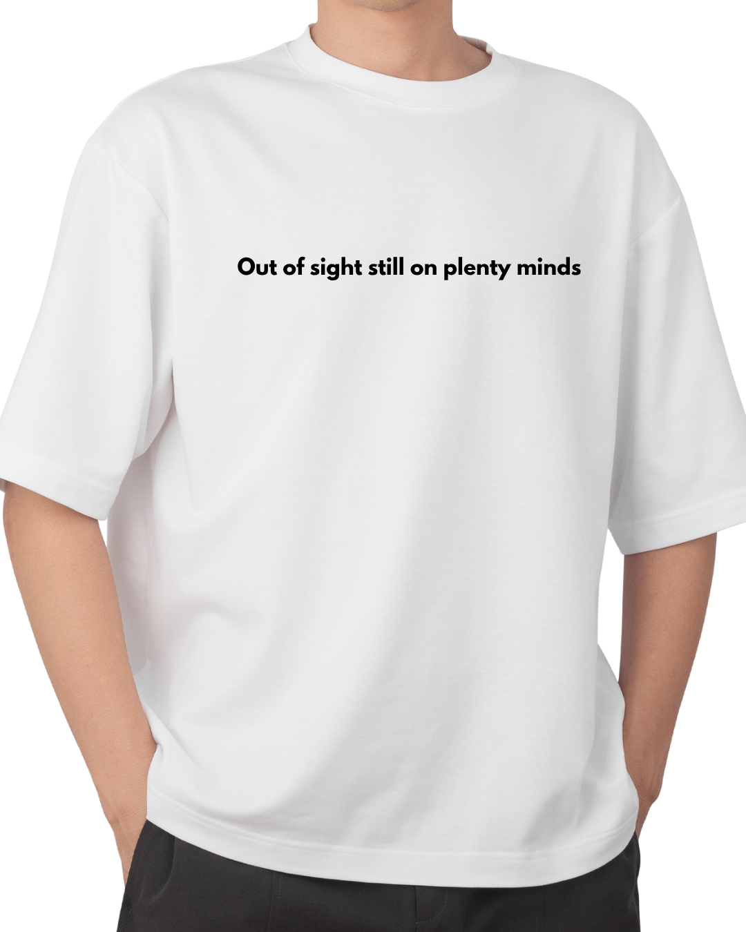 Stay lowkey, make waves. “Out of sight still on plenty minds” – a clean, confident oversized tee.